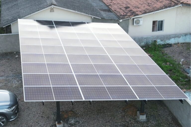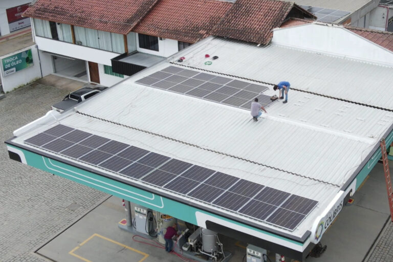 Os painéis captam a luz solar e convertem em energia elétrica limpa e renovável.